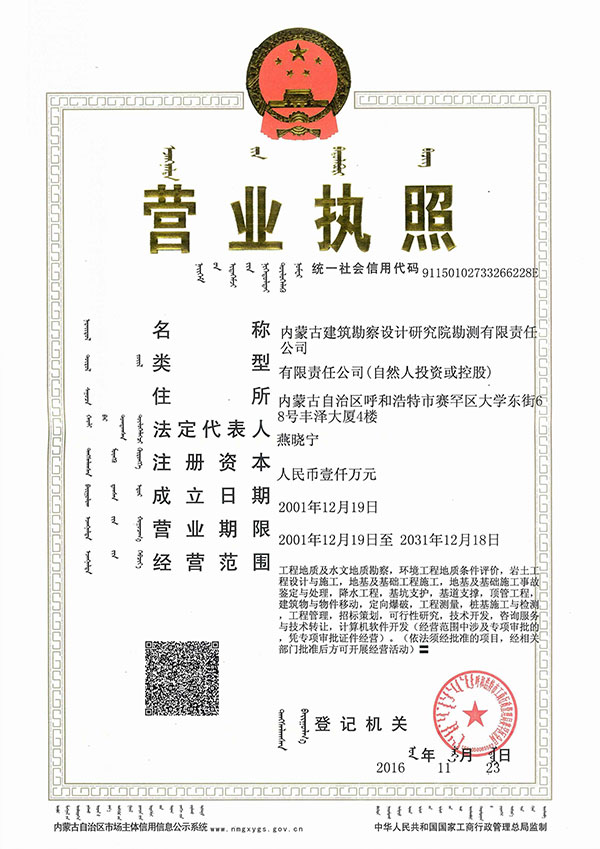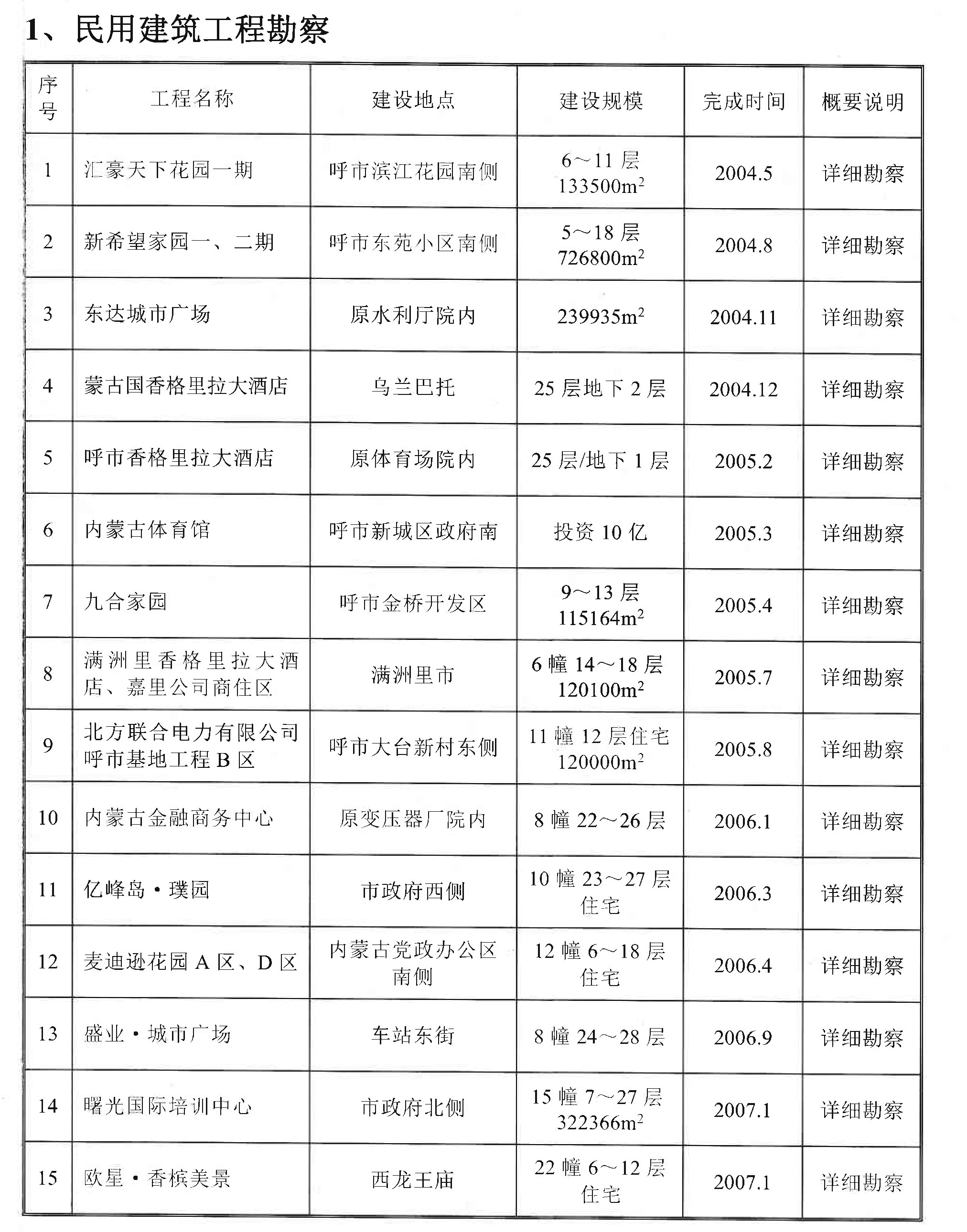 • 內蒙古建筑勘察設計研究院勘測有限責任公司,是全國首家完成 轉企建制的省級建筑勘察設計單位。公司前身為內蒙古建筑勘察 設計研究院勘測分院, 成立于1954年 ,經過六十多年的發(fā)展, 現(xiàn)已成為全區(qū)技術力量雄厚、專業(yè)設置齊全的集巖土工程勘察 、 設計、治理、檢測、監(jiān)理、咨詢、水文地質勘查、工程測量、科 研為一體的綜合性企業(yè) ... ... [查看詳情]